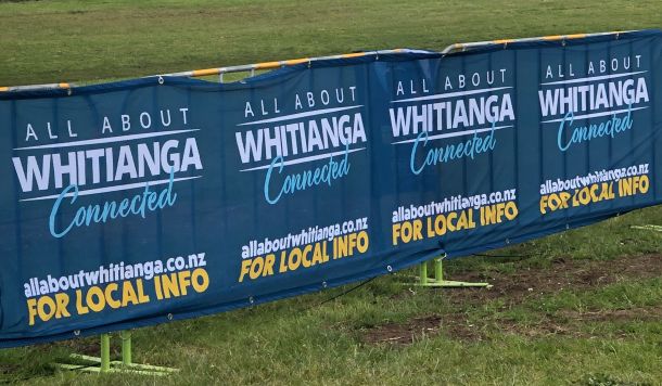 Large format sign erected on the site of The Palms Whitianga subdivision with each lot shown in the layout. Stickers show the current purchasing status of each lot. Each lot has its own sign with key information clearly displayed for further call to action.
