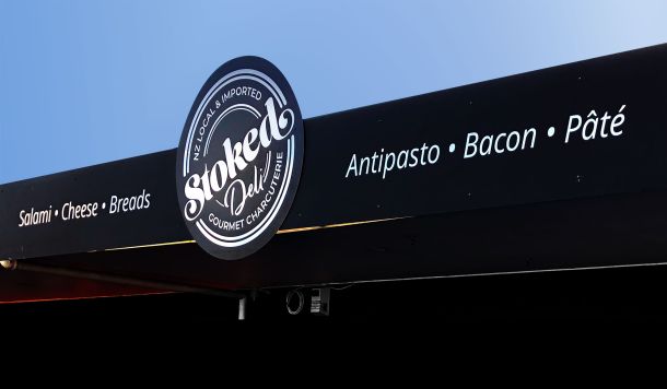 On the main street of Whitianga, Stoked Deli* stands out with bold and contrasting sign design that is both simple and elegant *since rebranded as Well Stocked Deli by its new owners, using the same timeless design elements from the original shown here.